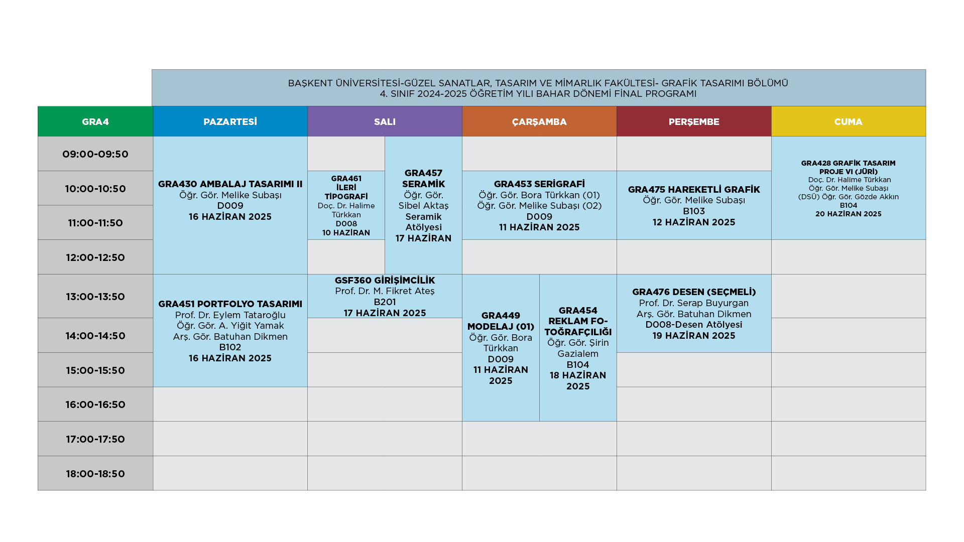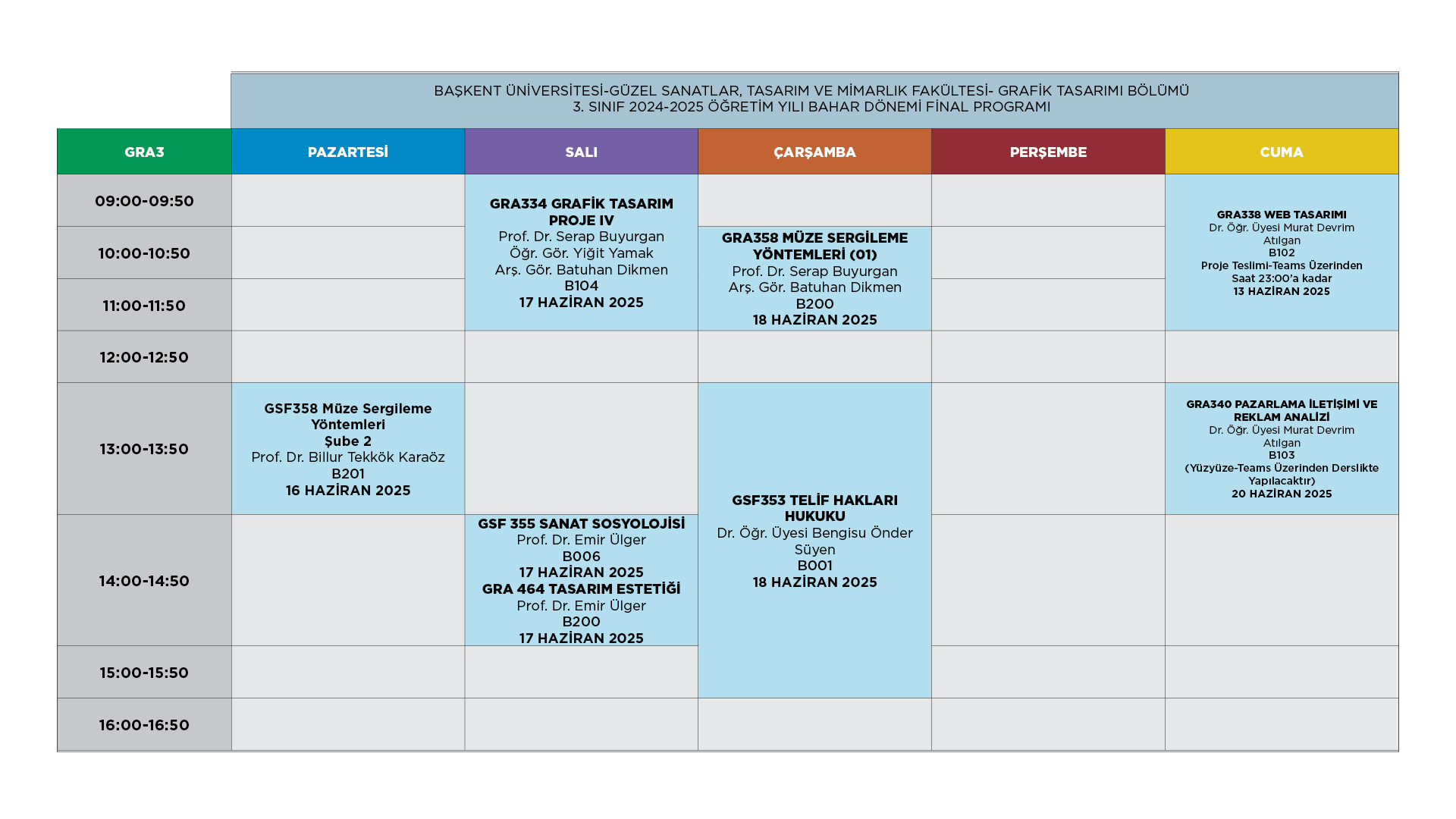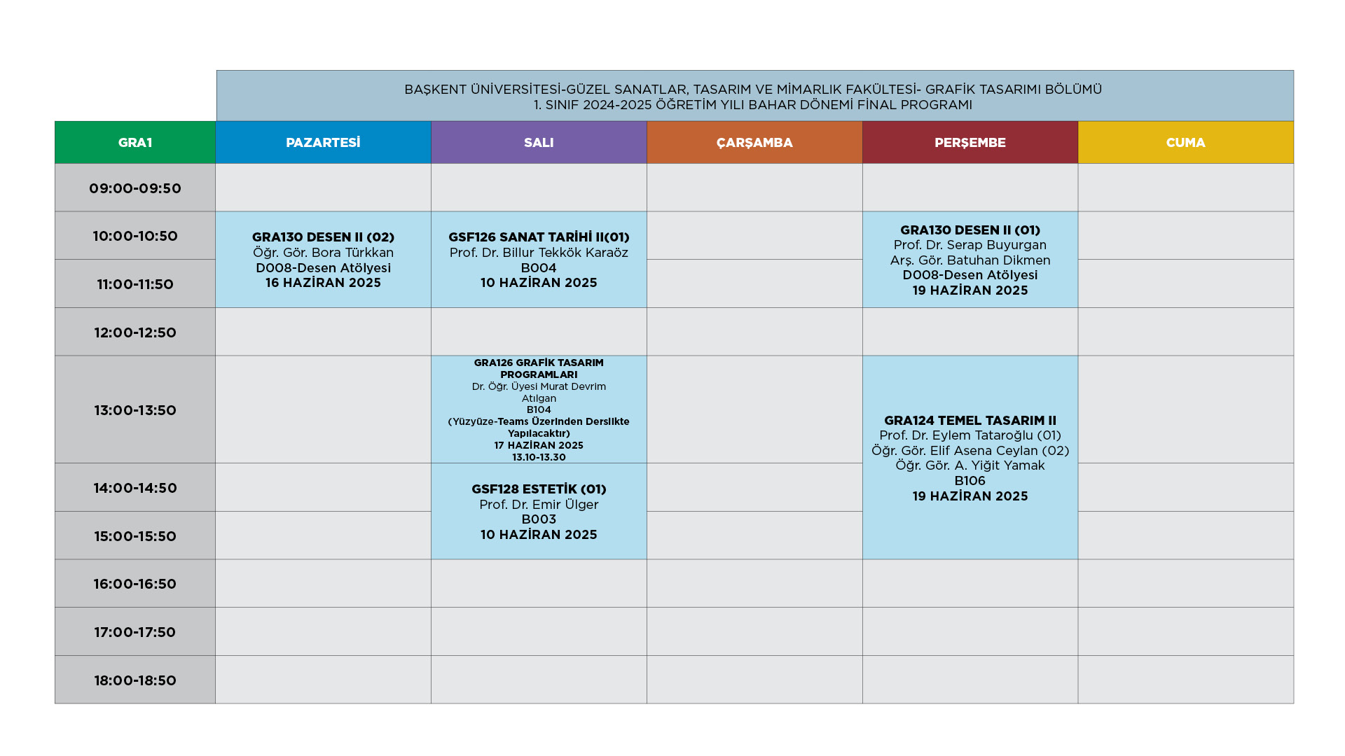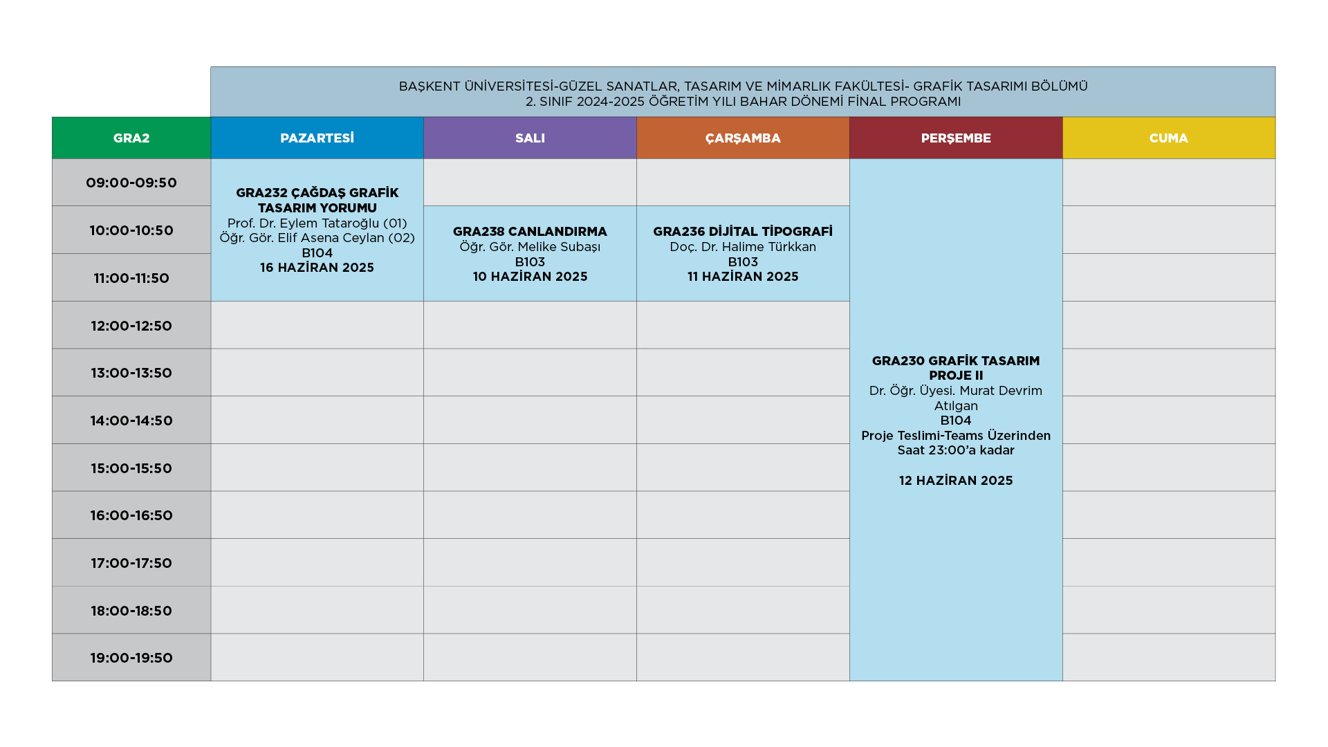 Grafik Tasarımı Bölümü 2024-2025 Bahar Dönemi Final Programı