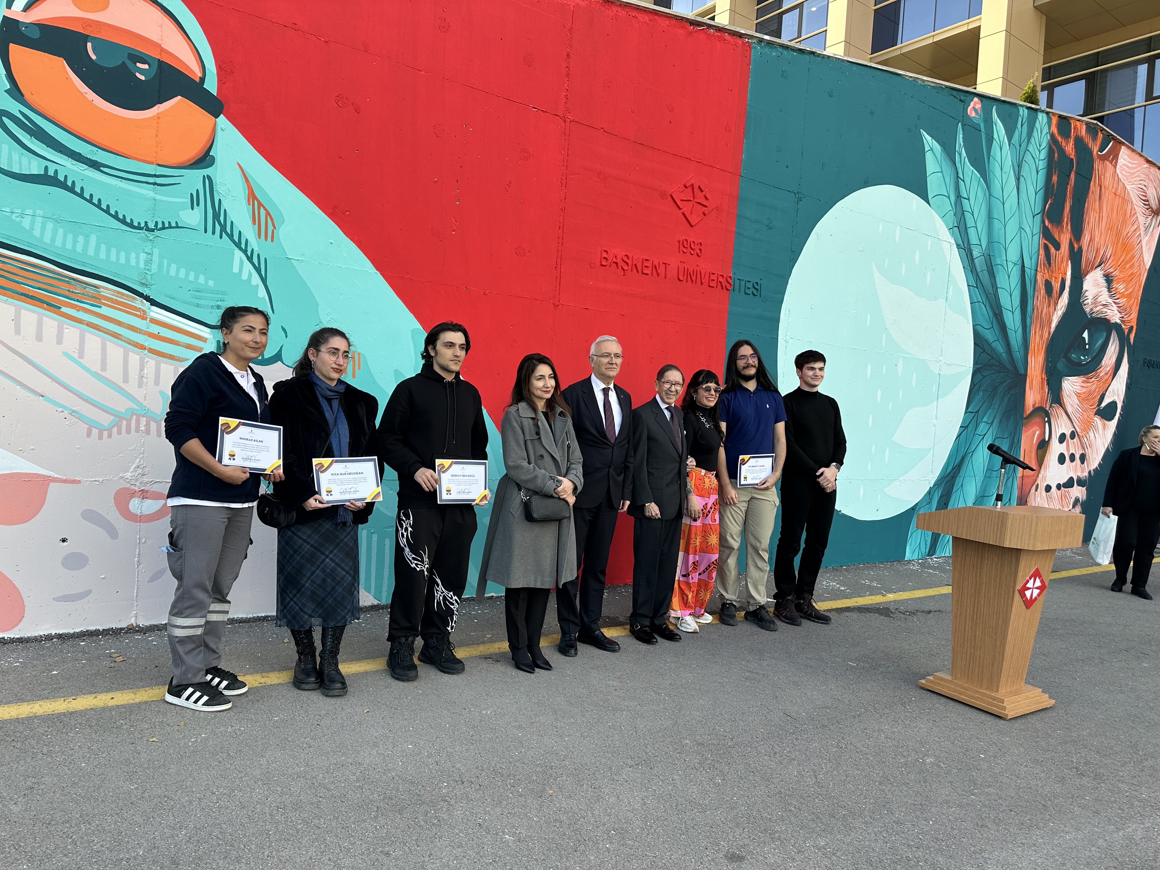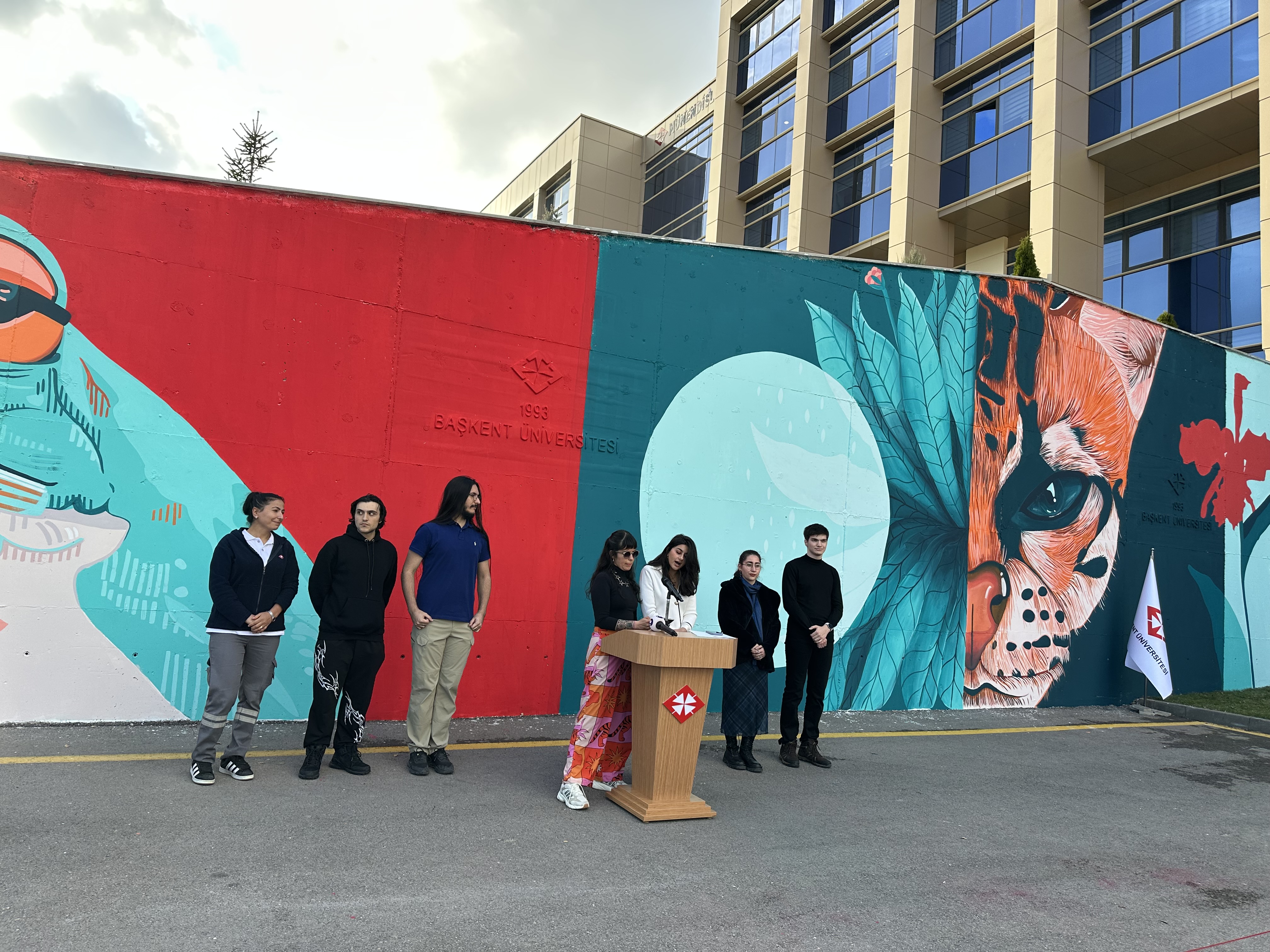 Bogota – Kolombiyalı sanatçı Lila CUCA’nın Başkent Üniversitesi Mühendislik Fakültesi’nde yaptığı “Yok Olmakta Olan Kolombiya Hayvanları” temalı duvar resminde Güzel Sanatlar Tasarım ve Mimarlık Fakültesi Grafik Tasarımı Bölümü 2025 yılı mezunumuz Nisa Nur Erdoğan ve üçüncü sınıf öğrencilerimiz Efe Burak Vuran, Berkay Bakangil ve A. Kadir Erciyas tüm çalışma sürecinde yer almıştır. Öğrencilerimizi kutluyor, gönülden teşekkür ediyoruz.