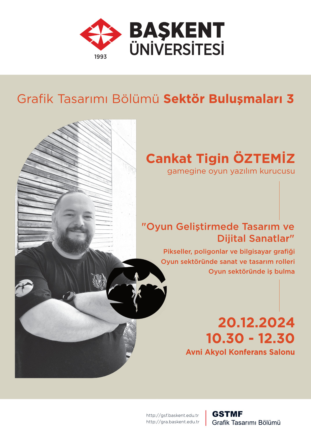20 Aralık 2024 tarihinde Cankat Tigin ÖZTEMİZ ile Avni Akyol Konferans Salonu'nda "Grafik Tasarımı Bölümü Sektör Buluşmaları 3" gerçekleştirilmiştir.