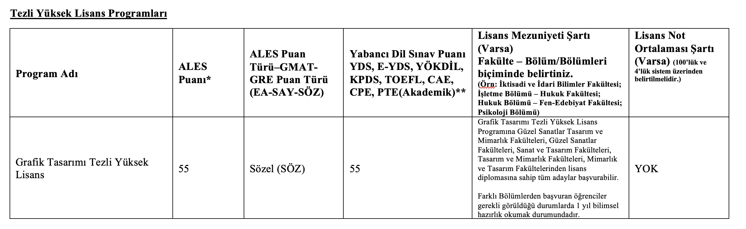 Yüksek Lisans Başvuru Linki İçin Tıklayınız
