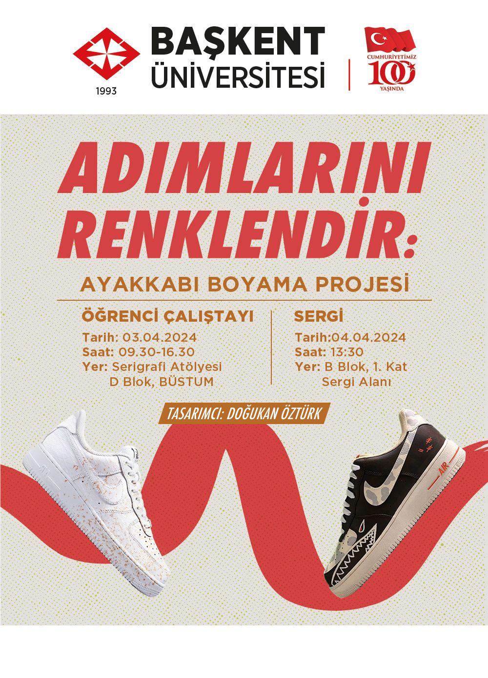 Sürdürülebilirlik kavramı yaşamın her alanında giderek hayat bulmaktadır. Grafik Tasarımı Bölümü olarak öğrencimiz Doğukan Öztürk’ün spor ayakkabılarını yaşama kendi tasarımlarıyla yeniden kazandırması bölümümüz tarafından öğrencilerimizle buluşturulmak istenmiştir ve bir proje ile hayata geçirilmiştir. Çalıştay, 3 Nisan 2024 saat 9.30-16.30 arasında her sınıftan 3 öğrenci olmak üzere toplam 12 öğrenci ile serigrafi atölyemizde gerçekleştirilmiştir. Çalıştay sergisi 4 Nisan 2024 tarihinde B Blok 1. Sergi alanında saat 13.30’da açılmıştır.
